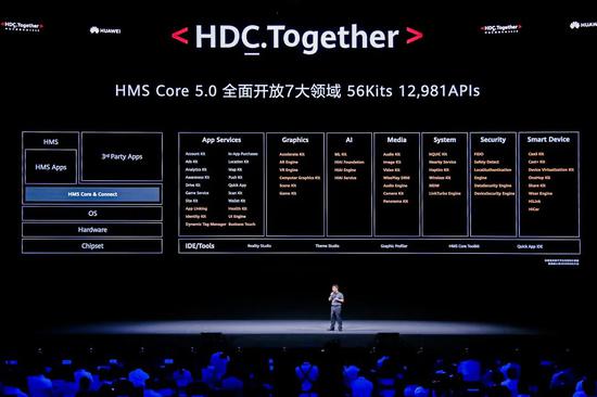 除了操作系统,余承东还在当天的开发者大会上发布了第五代移动服务套件HMS 5.0(Huawei Mobile Services),覆盖从支付、广告系统、浏览器、地图到搜索引擎等5大基础应用。这些应用目前仅面向海外市场,以补上Google的GMS——包括搜索引擎Google、地图应用Google Map、广告系统Google Ads、浏览器Chrome、视频平台YouTube等一系列由Google开发的应用服务空缺。